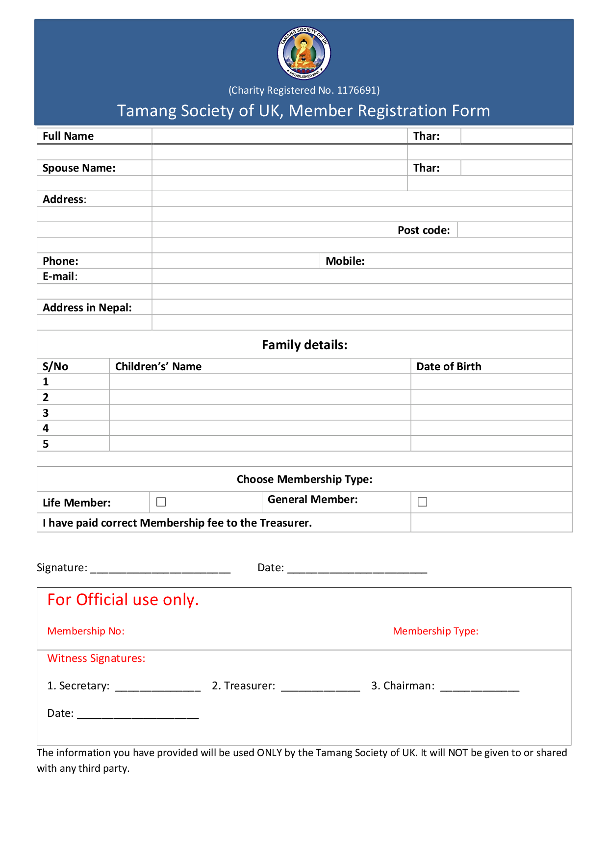Membership form Downloads